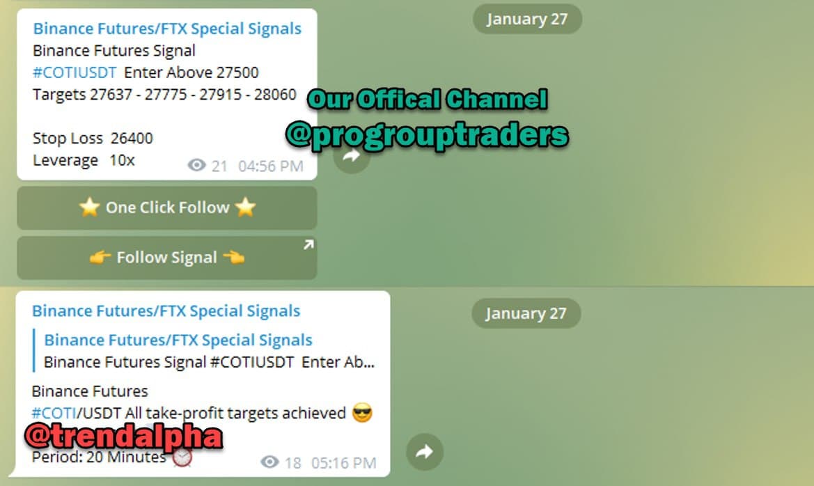 COTI/USDT has completed all the Profit Targets on Binance Futures & FTX and generated an Amazing 21% Profit